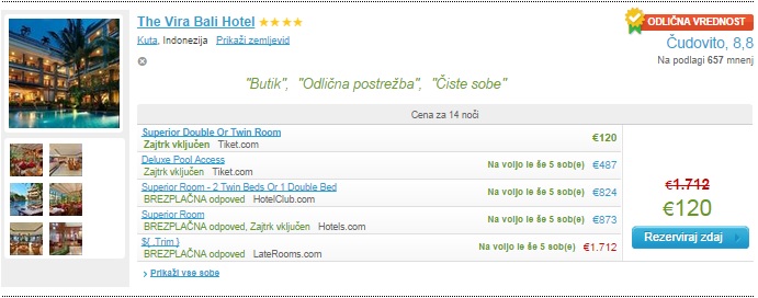 Prenočišče na Baliju: Hotel *** za 2 osebi, 24.9 – 4.10 (189 €) www.agoda.com