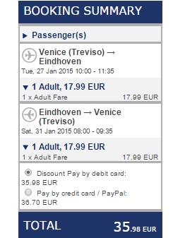 Kot druga možnost za obisk Nizozemske pa je let iz Trevisa v Eindhoven, ki vam ponuja eno izmed opcij za obisk Amsterdama. Za povratno letalsko vozovnico mesecu marcu boste odšteli le 40 €, vendar je transfer iz letališča v Eindhovnu do Amsterdama relativno drag. Priporočamo vam, da obiščite spletno stran www.blablacar.com (podobna zadeva kot www.prevoz.org), kjer boste našli prevoz iz Eindhovna do Amsterdama že za 6 € naprej. Za direktni bus iz letališča do Amsterdama boste odšteli okoli 38 € (povratno potovanje – www.terravision.eu). Čas potovanja je mesec marec.