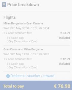 BERGAMO – GRAN CANARIA – BERGAMO www.ryanair.com – ročna prtljaga