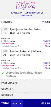 LJUBLJANA – LONDON – LJUBLJANA 36 €