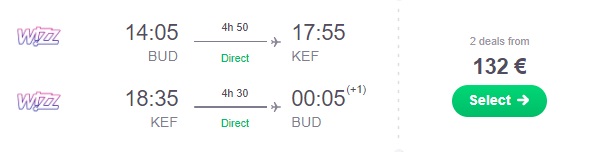 BUDAPEST – KEFLAVIK – BUDAPEST (www.wizzair.com) – mala ročna prtljaga