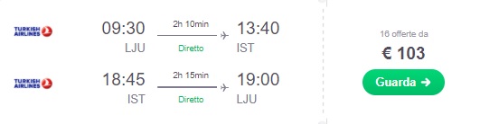 Super akcija najboljšega letalskega prevoznika v Evropi s katerim lahko izLjubljane v Istanbul letite že za 105 €! (povratna letalska vozovnica). S seboj imate lahko 30 kg prtljage. Na voljo je ogromno terminov vse od januarja do marca.