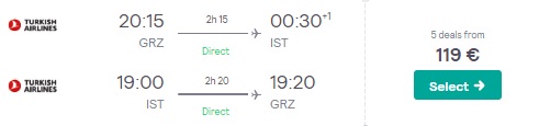Super akcija najboljšega letalskega prevoznika v Evropi Turkish Airlinesa s katerim lahko z direktnim letom iz Gradca letite že za 119 €! S seboj imate lahko 30 kg prtljage. Na voljo je nekaj terminov v mesecu novembru, decembru ter januarja, februarja in marca prihodnje leto + prvomajske počitnice. Gremo v šoping?