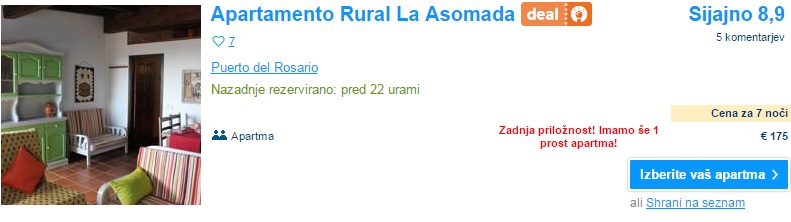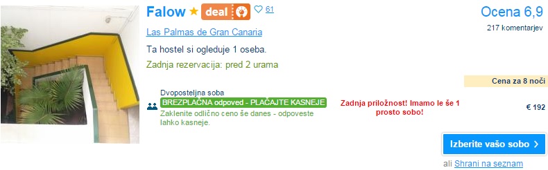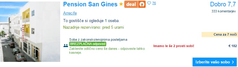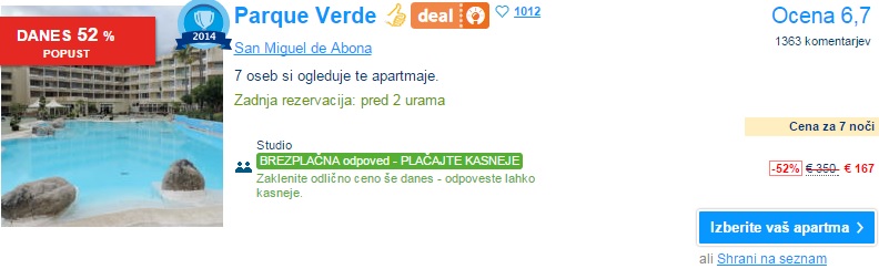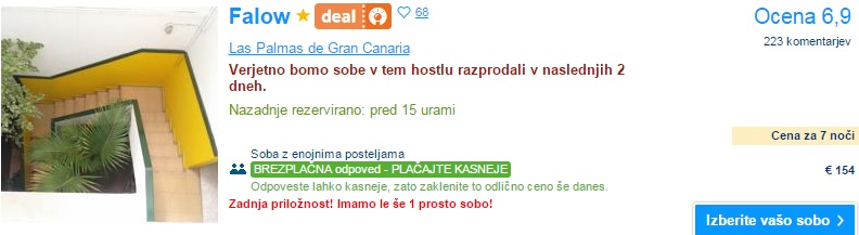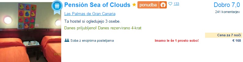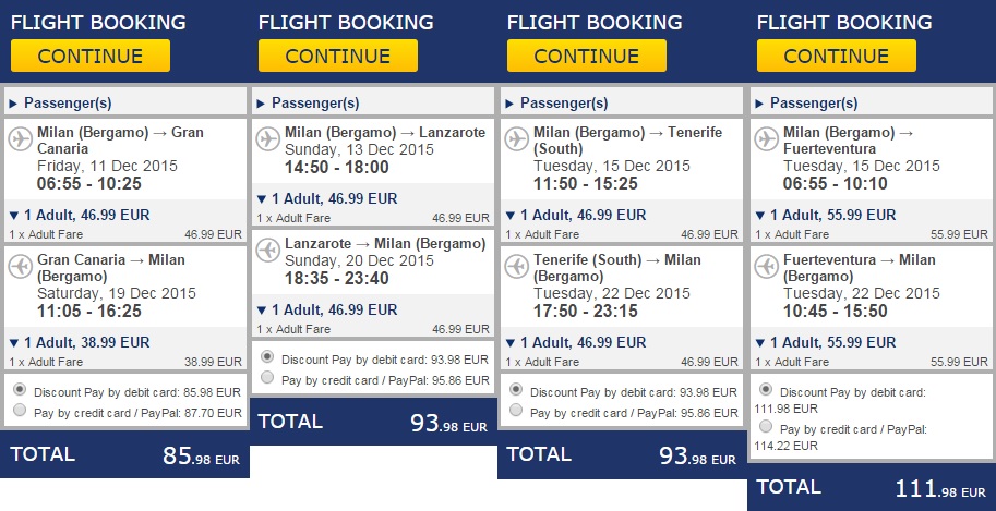 Kanarski otoki so zopet na voljo po zelo ugodni ceni. Privoščite si počitnice na Gran Canariji, ki je priljubljena počitniška destinacija z razvitimi počitniškimi naselji na jugu ter živahnim in modernim Las Palmasom na severu. Počitnice na tem otoku obljubljajo celoletno toplo in suho vreme ter veliko osupljivih plaž vse okoli otoka. Tja lahko v septembru iz Bergama letite za 115 € (povratna letalska vozovnica), če pa temu prištejemo še 7x nočitev, potem te bodo počitnice prišle samo 186 €/osebo, če potujejo 4 osebe.