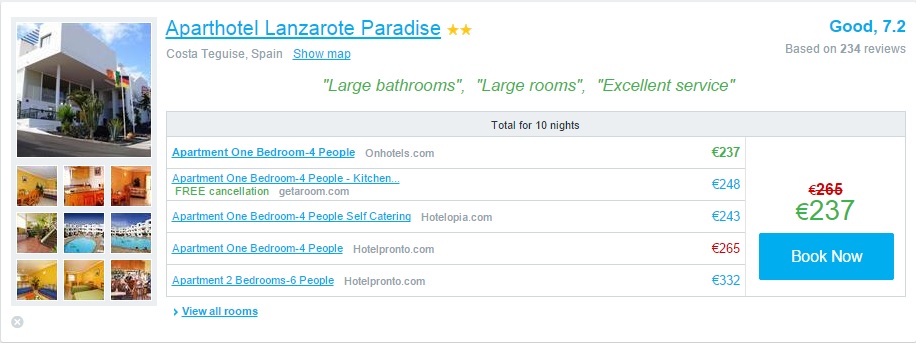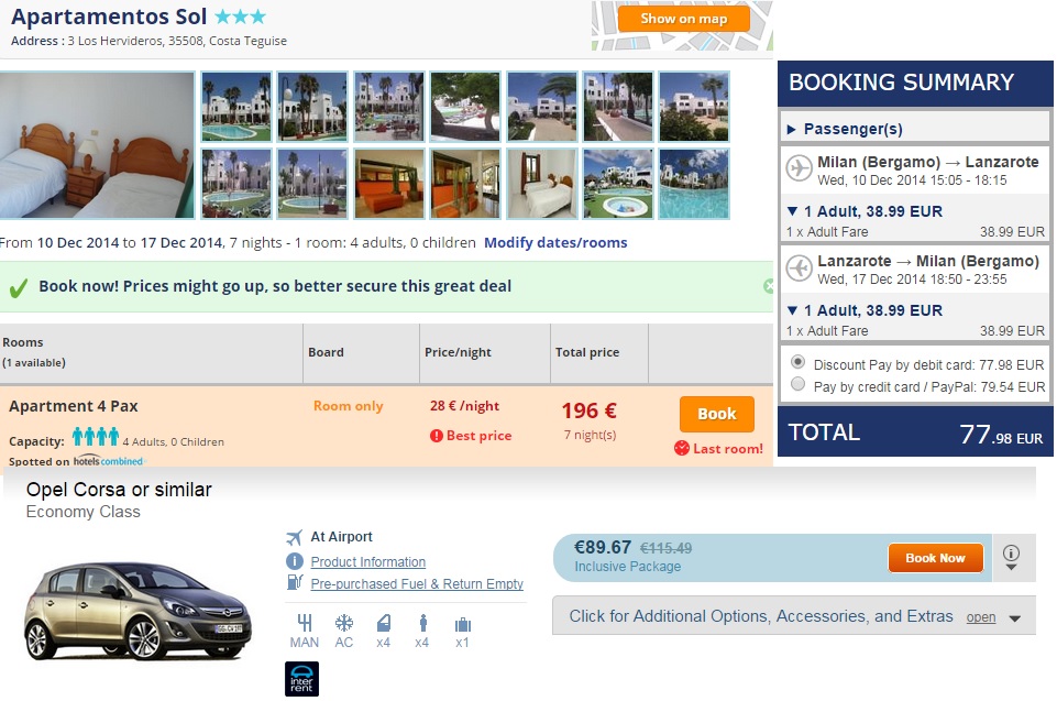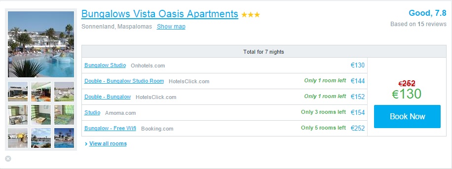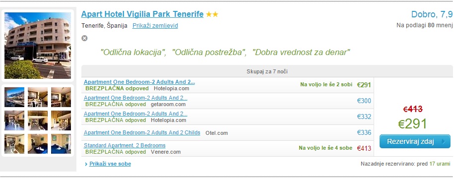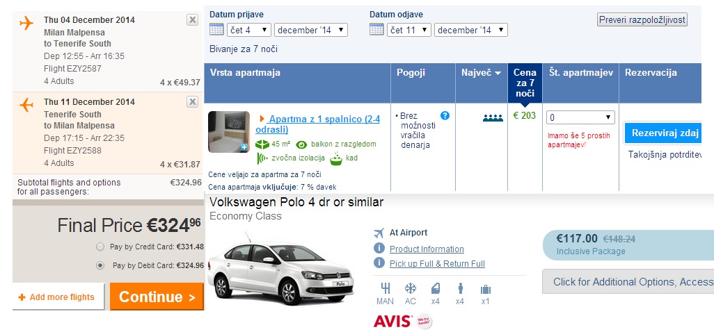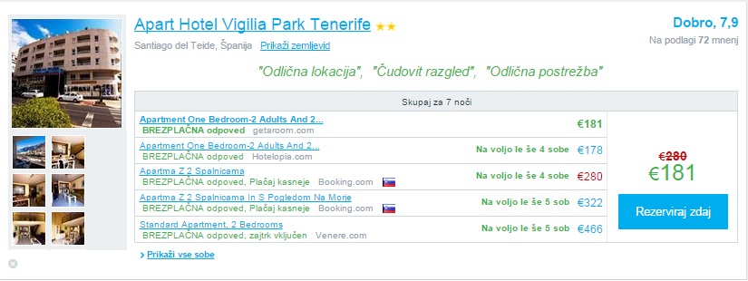 Prenočišče: 7x nočitev (3.-10. junij) v bungalovu za 2 osebi (130 €): www.onhotels.com