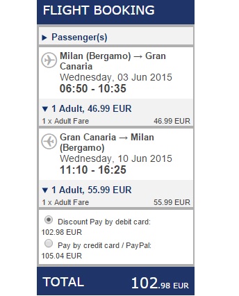 BERGAMO – GRAN CANARIA – BERGAMO www.ryanair.com – ročna prtljaga