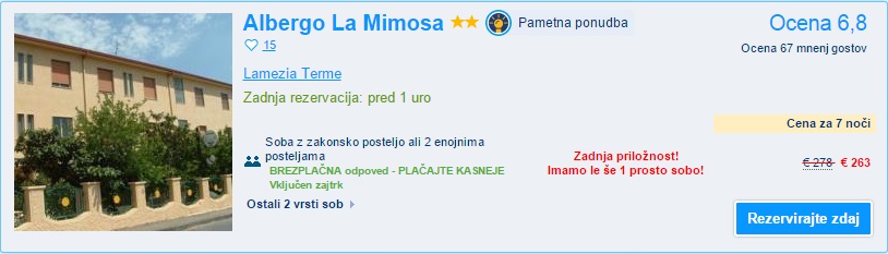 Na začetku poletja se vam v mesecu juniju ponuja odlična priložnost za dopust na čudovitih plažah in kristalno čistem morju. Govorimo o mestu Lamezia Terme in njeni okolici (Tropea). To čudovito mesto, ki leži v Kalabriji na jugozahodu italijanskega škornja in ga obdaja Tirensko morje, ponuja nekatere resnično čudovite plaže in veliko možnosti za raziskovanje in potovanje po jugu Italije. Možnih je več terminov, za pa smo ibrali termin od 16. – 23. junija. Nizkocenovnik Ryanair vam ponuja povratne letalske vozovnice že za 58 €, če temu dodamo še 7 nočitev z zajtrkom pa pridemo do 8 dnevnih počitnic za zelo ugodnih 190 €/osebo, če potujeta 2 osebi. Odhod in prihod je Treviso.