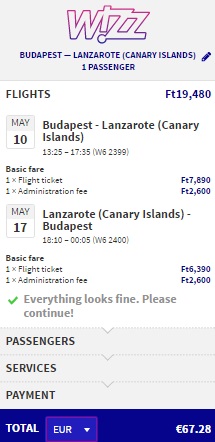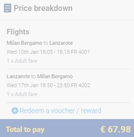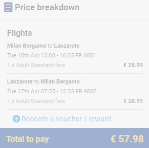 BERGAMO – LANZAROTE – BERGAMO (www.ryanair.com) – ročna prtljaga