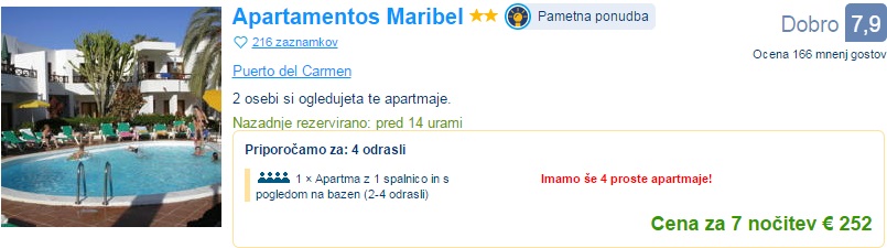 – Lanzarote: (13.-20.12), 7x nočitev, dvoposteljna soba, 182 €: www.booking.com