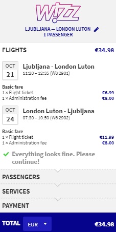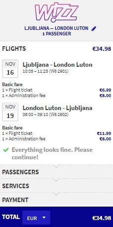 TRST – LONDON – TRST (www.ryanair.com) – ročna prtljaga