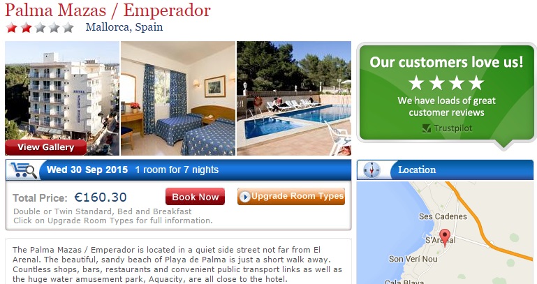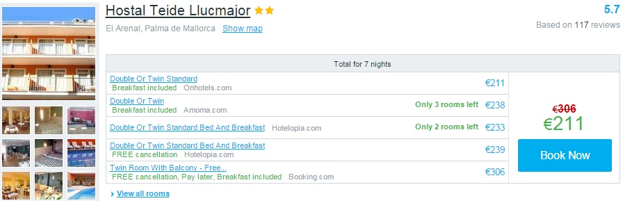 Dopust za 4 osebe. Ponujamo vam odlično idejo za majske počitnice na sončnem otoku sredi Sredozemlja. Mallorca ponuja obilico peščenih plaž, čudovito vreme in živahno nočno življenje. Nizkocenovnik Ryanair vas popelje iz Bologne na Mallorco v mesecu septembru že za 68 € (povratna). Če dodamo k tej ceni še hotel (7x nočitev), potem pridemo do super ugodne cene 153 €/osebo v primeru, da potujejo 4 osebe. Kot primer smo vzeli termin 20. – 27. september 2017.