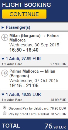 BERGAMO – PALMA – BERGAMO   www.ryanair.com (ročna prtljaga)