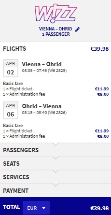 VIENNA – OHRID – VIENNA – mala ročna prtljaga