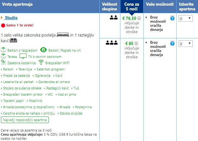 Prenočišče Hotels in Kibar 3 nočitve – studio za 2 osebi
