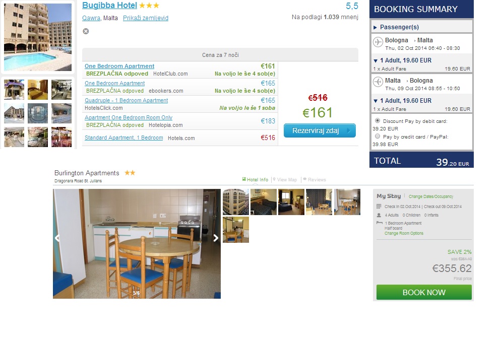 Malta je pogosto imenovan kot otok sonca, zahvaljujoč imenitnemu vremenu in podnebju, ki je tipično mediteransko. Počitnice na Malti so za vsakogar, ne glede na starost in kaj vas zanima. To je odlična destinacija za družinske počitnice in romantičen oddih. Na voljo je je veliko terminov v maju. Kot primer smo vzeli termin med 9. – 16. majem, v katerega je vključen povratni letalski prevoz in hotel. Cena 238 €/2 osebi ali 119 €/osebo. Za transfer do letališča preveri www.goopti.com. Odhod je iz Trevisa.