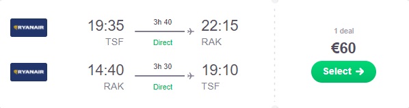 TREVISO – MARRAKESH – TREVISO (www.ryanair.com) – ročna prtljaga