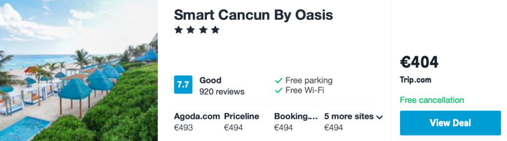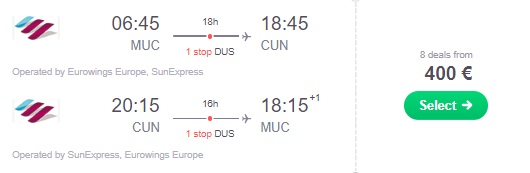 Super cena povratne letalske vozovnice do rajskega Cancuna iz nase Ljubljane. Mehika je dosegljiva iz Brnika že za 522 €! Primer: Termin 31.5 – 1.6. 2022. Dvoposteljna soba v hotelu**** za 7 nočitev in povratna letalska karta je na voljo že za samo 726 €! Letalski prevoznik je portugalski Turkish Airlines. V ceno je vključena oddana prtljaga. Opcija je tudi vec dni. Mimogrede lahko spijete tudi kavo v Istanbulu. Kaj pravite?