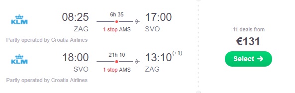 Ponuja se vam prava priložnost da obiščete vsemogočno prestolnico Rusije. Moskva, čudovito mesto, ki je absolutno vredna ogleda se vam ponuja po zelo ugodnih cenah. Nizozemski KLM vam ponuja povratne letalske vozovnice v mesecu novembru in decembru že za 131 €! Prihod in odhod je iz Zagreba. Ob povratku imate layover (postanek) v Amsterdamu kar lahko izkoristite za ogled mesta.