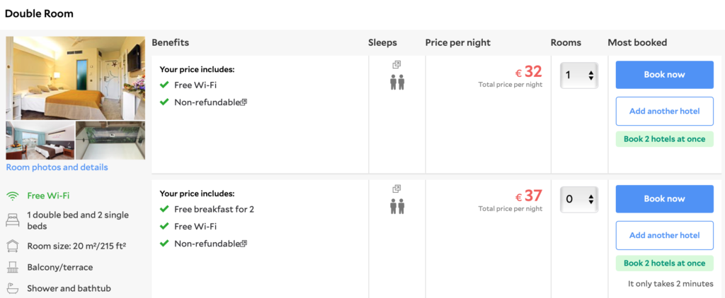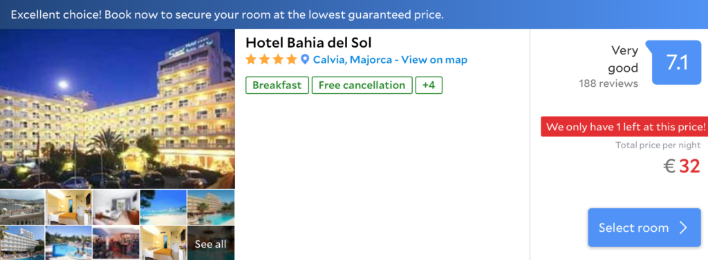 Ponujamo vam odlično idejo pocitnic na sončnem otoku sredi Sredozemlja. Mallorca ponuja obilico peščenih plaž, čudovito vreme in živahno nočno življenje. Nizkocenovnik Ryanair vas popelje z Trevisa na Mallorco že za 67 € (povratna karta). Če dodamo k tej ceni še (7x nočitev v hotelu Cala Romani – ALL INCLUSIVE), potem pridemo do super ugodne cene 431 €/osebo v primeru, da potujeta 2 osebi. Kot primer smo vzeli termin 29.6 – 6.7. 2022.