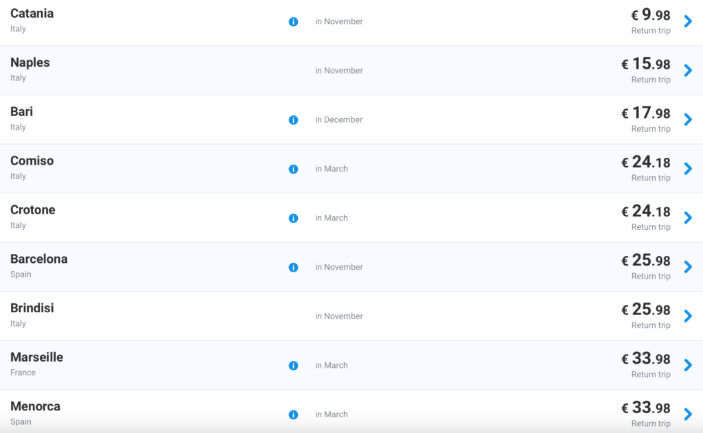 – leti so iz nam bližnjih letališč (Trst, Treviso, Ljubljana, Bologna, Dunaj, Munchen, Zagreb, …)