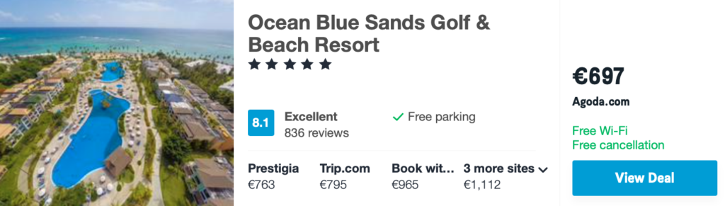 7 nocitev All inclusive v hotelu***** OCEAN BLUE & SAND in povratna letalska karta stanę samo 786 €! Termin 5.6 – 12.6. 2021).