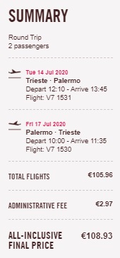 TRIESTE – PALERMO – TRIESTE  – ročna prtljaga