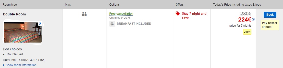 Dvoposteljna soba z zajtrkom, 7x nočitev (7.-14. junij), 245 € www.booking.com