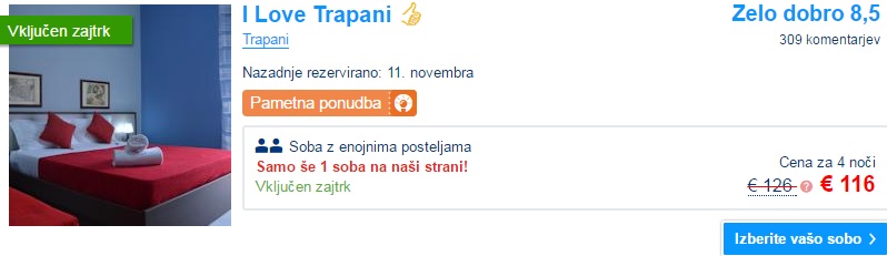 Soba za 2 osebi z zajtrkom, 94 € www.booking.com
