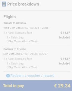 TRST – CATANIA – TRST    www.ryanair.com – ročna prtljaga
