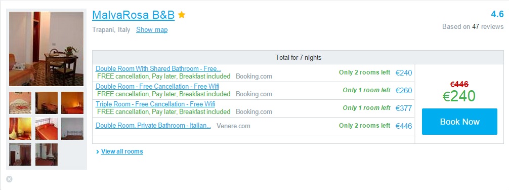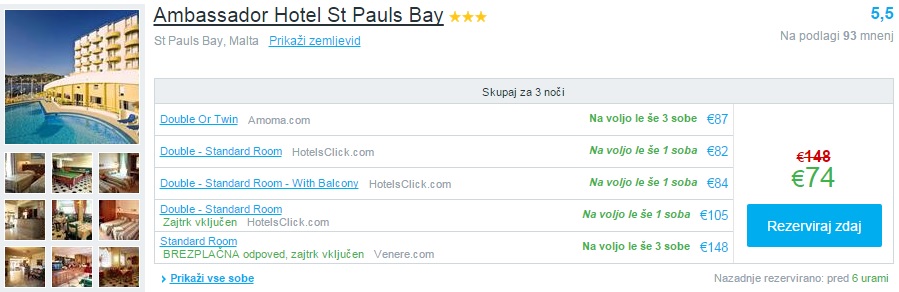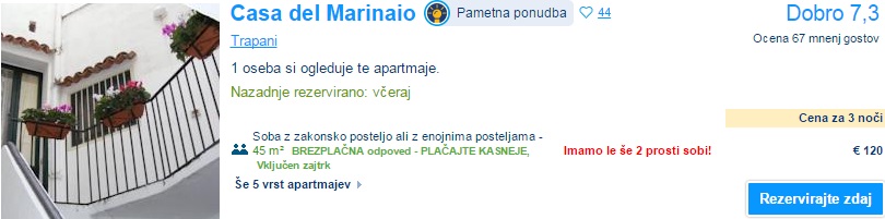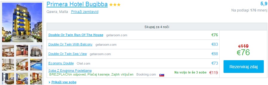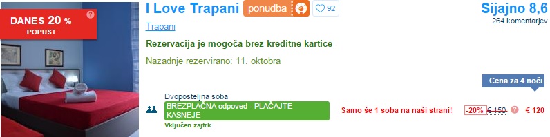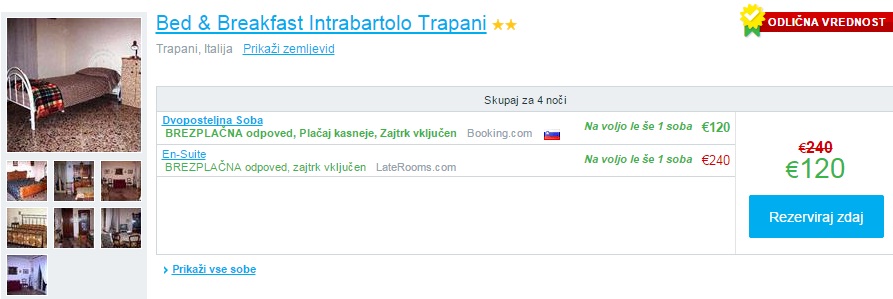 Dvoposteljna soba z zajtrkom, 7x nočitev (18.-22. januar), 120 € www.booking.com