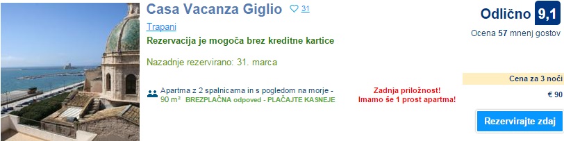V mesecu januarju se vam ponuja lepa priložnost za raziskovanje ali pa samo oddhih na največjem otoku v Sredozemlju. Sicilija ima nešteto kamnitih in peščenih rajskih plaž, ki vas bodo navdušile. Povratno letalsko vozovnico iz nam bližnjega Trsta do Trapanija lahko v mesecu januarju kupiš že za 39 €. Skupaj s prenočiščem (4x nočitev z zajtrkom) že za 99 €/osebo v primeru, da se na potovanje odpravita 2 (termin 18. – 22. januar).