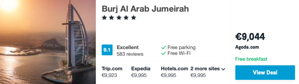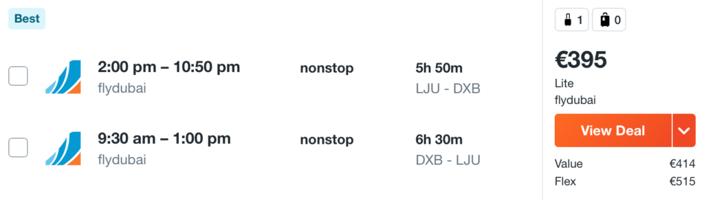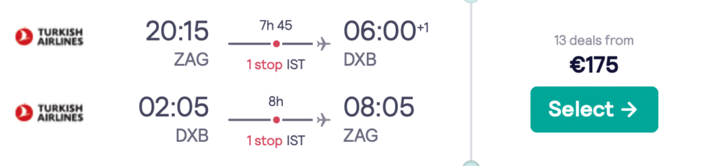 Kratek luksuzen oddih v vsemogočnem Dubaju, ki vas bo na vsakem koraku vedno znova fasciniral je iz bližnjega Zagreba ali nase Ljubljane dosegljiv že za 377 €/osebo. V ceno je vključena povratna letalska vozovnica in 5 nočitev v hotelu***** Movenpick. Sama vozovnica stane samo 221 €! (indirektni let preko Istanbula). Letalski prevoznik je Turkish Airlines. Check-in prtljaga 30 KG je vključena v ceno.