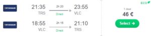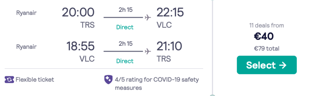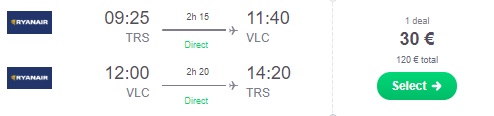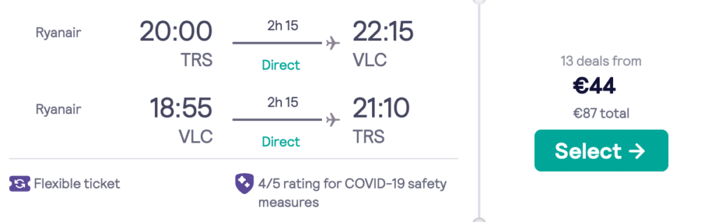 V mesecu maju se vam ponuja idealna priložnost za ogled čudovitega obmorskega mesta, Valencije. To čudovito obmorsko mesto navdihuje z arhitekturo, prijetnim podnebjem in kvalitetnim nočnim življenjem. Tja se lahko iz bliznjega Trsta odpravite že za 40 €! Če dodamo k temu še prenočišče (4 nočitve v dvoposteljni sobi) pridemo do cene 85 €/osebo v primeru, da potujeta 2 osebi. Kot primer smo navedli termin 4.5 – 8.5. 2021. Letalski prevoznik je irski Ryanair.