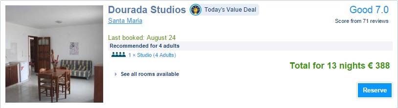 Apartma rezerviraj na spletni strani www.booking.com 388 € za 4 osebe. Turistična taksa znaša 0,90 € na noč/osebo.