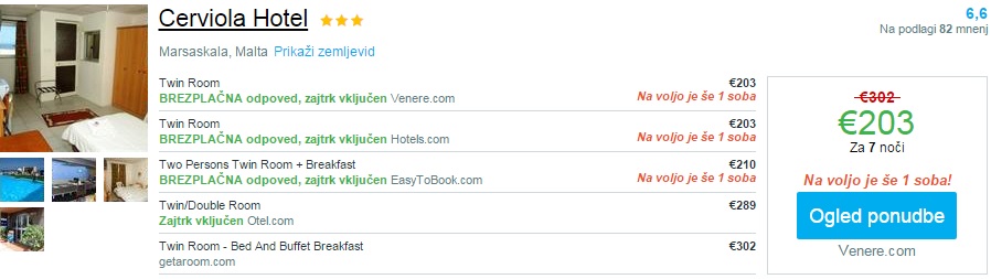 V septembru se ti ponuja možnost za odličnega dopusta in oddiha na Malti. To je odlična destinacija za družinske počitnice in romantičen oddih. Na voljo je kar nekaj terminov. Kot primer smo vzeli termin med 18. – 25. septembrom v katerega je vključen povratni letalski prevoz in hotel (7x nočitev z zajtrkom). Vse to se ti ponuja za samo 164 €/osebo. Za transfer do letališča preveri www.goopti.com. Odhod je iz Trevisa.