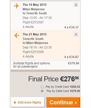 MILANO – TENERIFE – MILANO (www.easyjet.com) – ročna prtljaga (4 osebe)