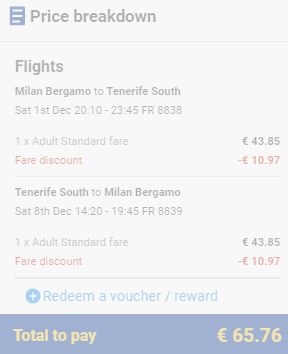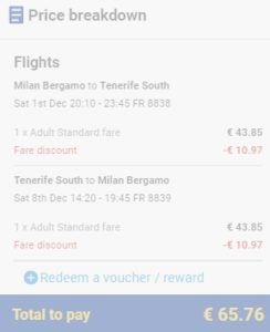 BERGAMO – TENERIFE – BERGAMO    (www.ryanair.com) – ročna prtljaga