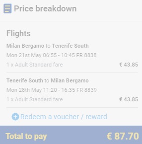 BERGAMO – TENERIFE – BERGAMO (www.ryanair.com) – ročna prtljaga