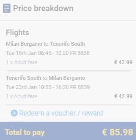 BERGAMO – TENERIFE – BERGAMO (www.ryanair.com) – ročna prtljaga