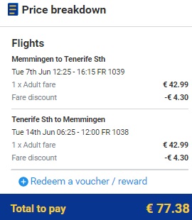 MEMMINGEN – TENERIFE – MEMMINGEN (www.ryanair.com) – ročna prtljaga
