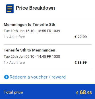 MEMMINGEN – TENERIFE – MEMMINGEN     (www.ryanair.com) – ročna prtljaga