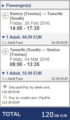 TREVISO – TENERIFE – TREVISO (www.ryanair.com) – ročna prtljaga
