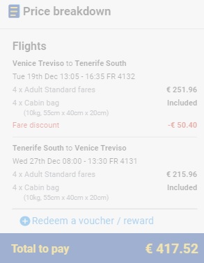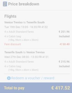 TREVISO – TENERIFE – TREVISO (www.ryanair.com) – ročna prtljaga