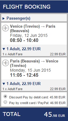 TREVISO – PARIZ (BEAUVAIS) – TREVISO  (www.ryanair.com) – ročna prtljaga