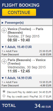 TREVISO – PARIZ (BEAUVAIS) – TREVISO (www.ryanair.com) – ročna prtljaga