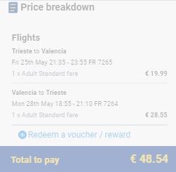 V mesecu maju se vam ponuja idealna priložnost za ogled čudovitega obmorskega mesta, Valencije. To čudovito obmorsko mesto navdihuje z arhitekturo, prijetnim podnebjem in kvalitetnim nočnim življenjem. Tja se lahko iz Trsta odpravite že za 48 €!. Če dodamo k temu še hotel (3 nočitve) pridemo do cene 97 €/osebo v primeru, da potujeta 2 osebi. Letalski prevoznik je irski Ryanair.. Transfer do letališča v Trstu lahko naredite z Gooptijem. Kot namig vam mogoče priporočamo ogled nogometne, košarkaške ali rokometne tekme.
