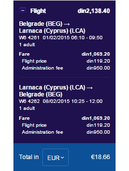 BEOGRAD – LARNAKA – BEOGRAD    1.2 – 8.2 = 18 €